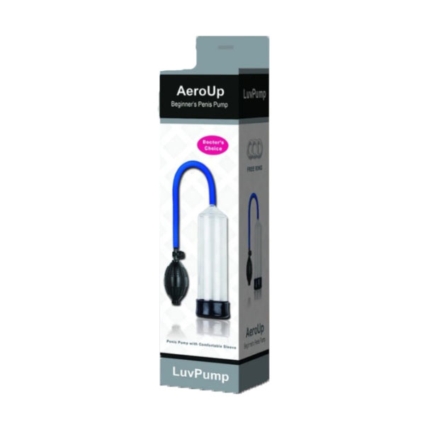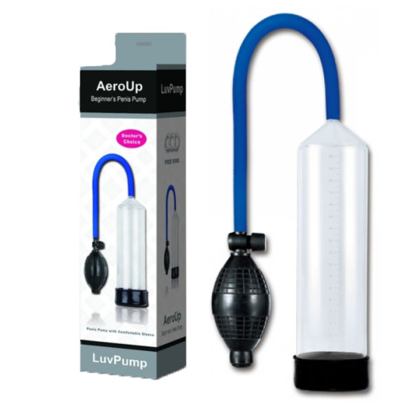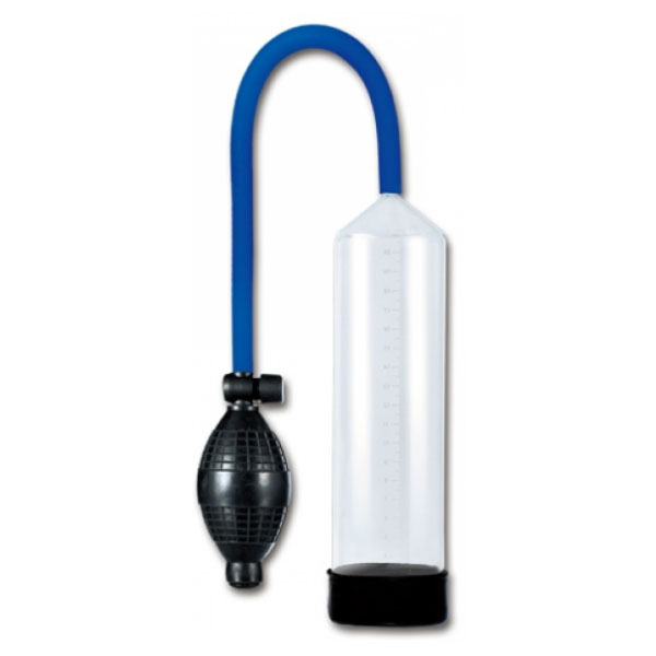 Vakuum pumpa za penis u providno beloj boji. Izrađena je od plastike. U pakovanju se dobija prsten za penis.