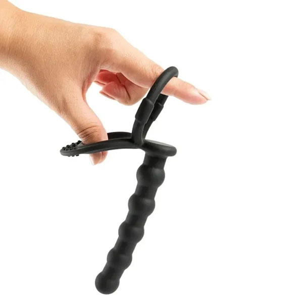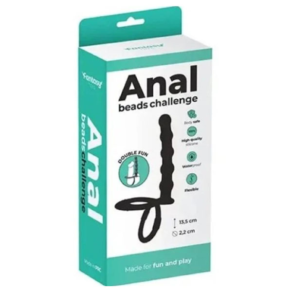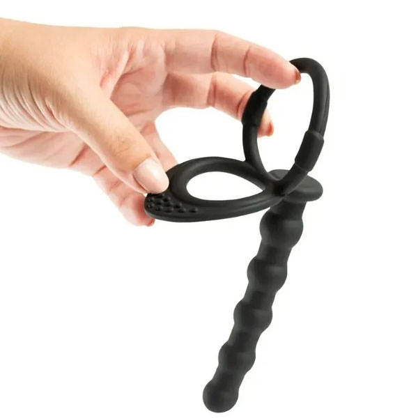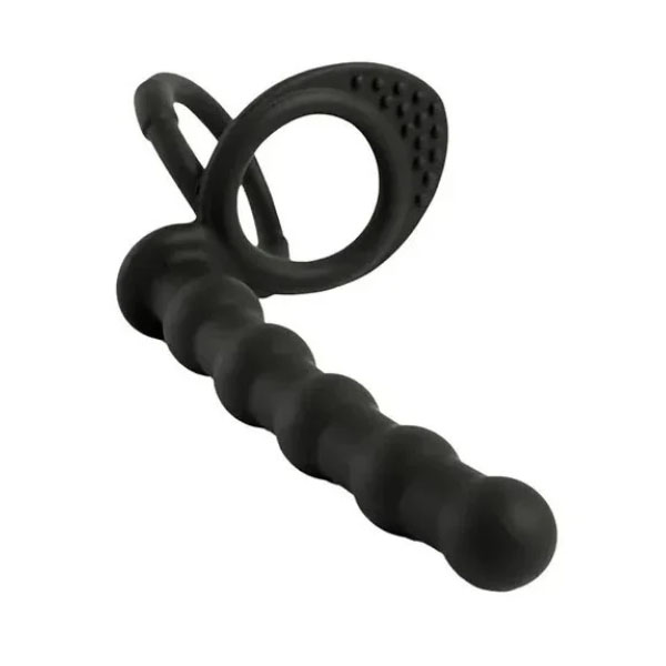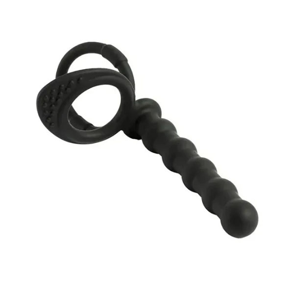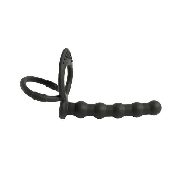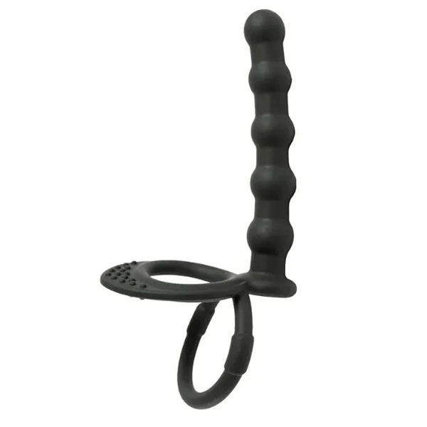 Prsten za penis i testise sa dodatkom dildoa za analnu penetraciju partnerke. Igračka je izrađena od svilenkastog silikona, prijatnog na dodir, u crnoj boji. Zahvaljujući prstenovima erekcija će biti jača i odnos će trajati duže. Prsten za penis na sebi ima bobice za dodatan nadražaj. Telo analnog dildoa se sastoji od niza sitnih kuglica, te će analna stimulacija biti intenzivnija.
