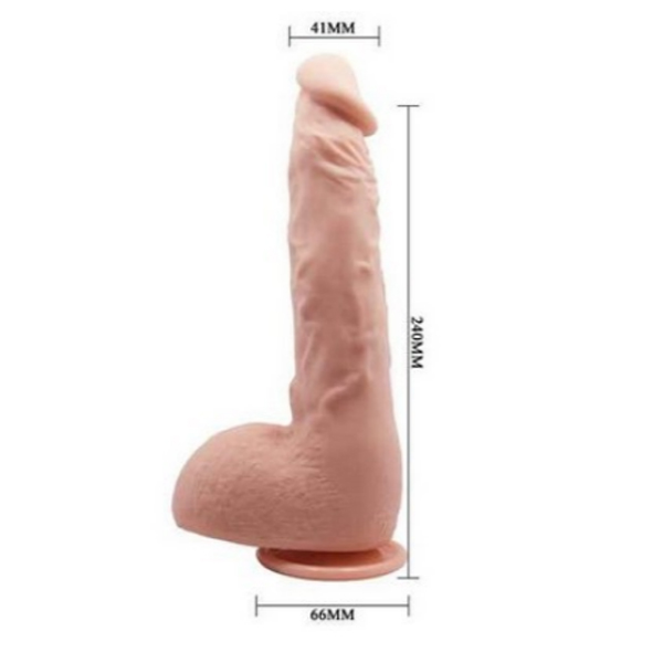 Realističan dildo, izrađen od svilenkastog silikona, u boji kože. Ovaj dildo izuzetno je makan i savitljiv, te vrlo realističan kada se koristi. Poseduje testise i vakuumsko postolje, što omogućava da se učvrsti na bilo koju glatku površinu.