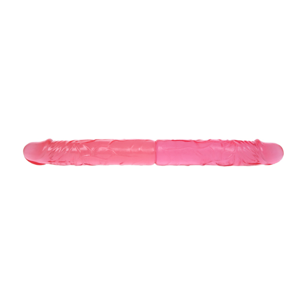 Dupli dildo izrađen od jelly silikona, u transparentnoj roze boji. Veoma je savitljiv, pa Vam daje razne mogućnosti istraživanja.