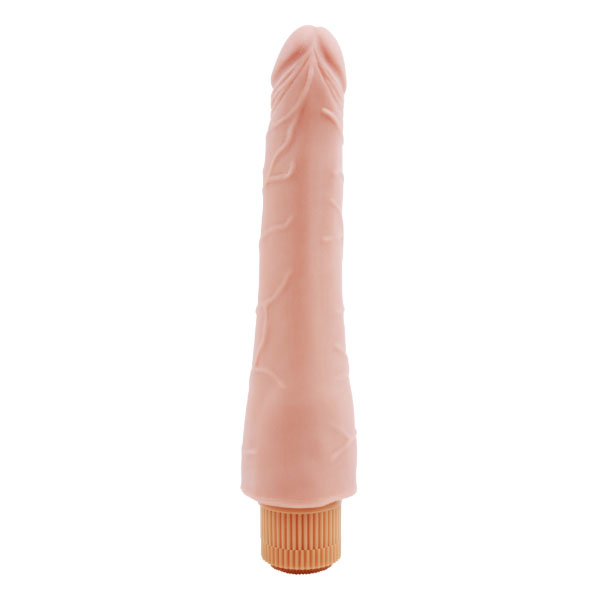 Realistični vibrator od svilenkastog silikona, u boji kože. Materijal je mekan i nežan prema koži. Veoma je savitljiv. Poseduje 1 vrstu vibracije, ali sa podesivim intenzitetom vibracije, od najslabijeg ka najjačem. Dakle podešavate brzinu kako Vam u kom trenutku odgovara. Takođe je anti-bakterijski zbog čega će Vam Vaše telo posebno biti zahvalno. Vibrator radi na 2 AA baterije. I nije vodootporan.