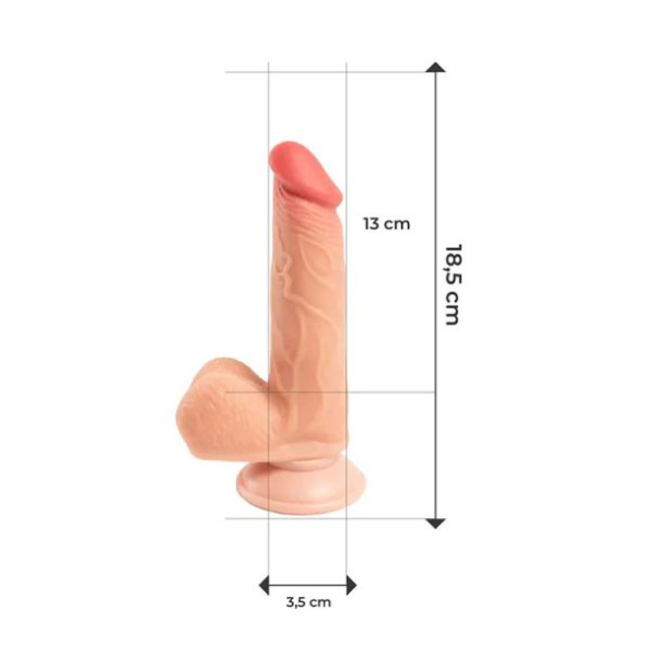 Realističan dildo izrađen od mekanog siliona, u boji kože. Ima testise i vakuumsko postolje, pa se može učvrstiti za bilo koju ravnu površinu ili neki strap-on. Za bolji doživljaj koristite neki  lubrikant na bazi vode.