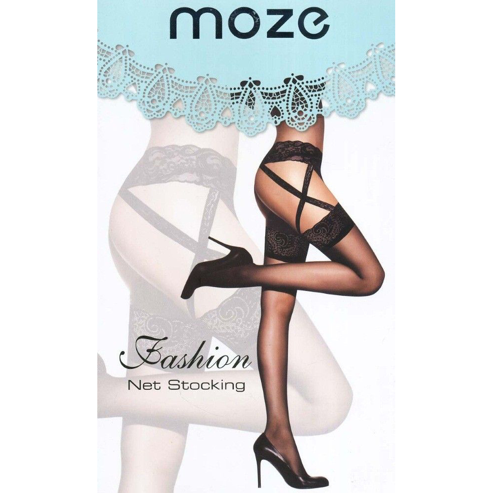Satenske čarape povezane sa čipkastim halterima u crnoj boji. Veličina je univerzalna.