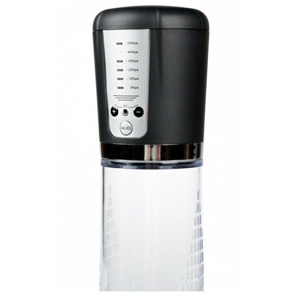 Električna pumpa za penis izrađena od plastike, providna. Poseduje 3 dugmeta gde se na jednom pali vakuum i pojačava snaga, na drugom se smanjuje snaga vakuuma, a na trećem otpušta vazduh. Pritisak možete pratiti na led indikatoru i ima 5 jačina.