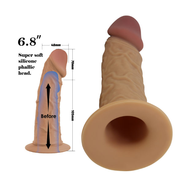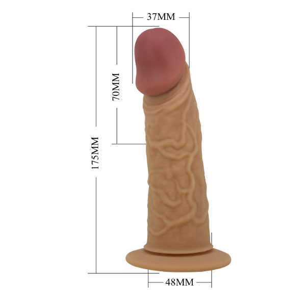 Dimenzije: Ukupna dužina dildoa je 17 cm, a deo za penis iznosi 10 cm, dakle uvećava penis za 7 cm. Prečnik je 4,8 cm.