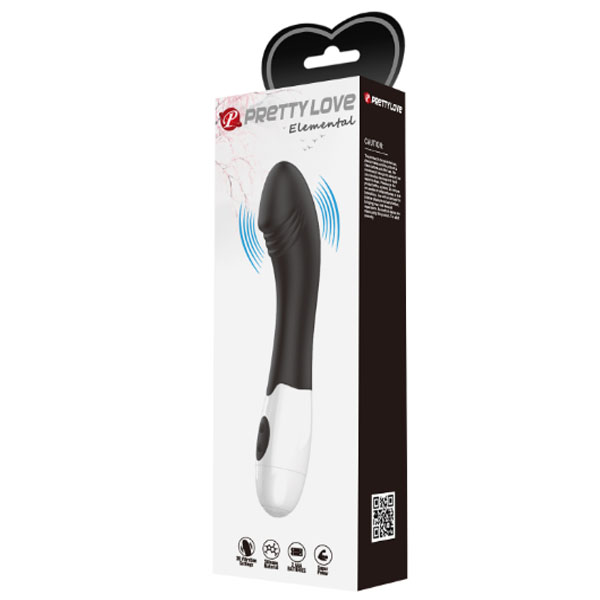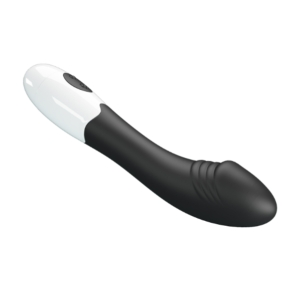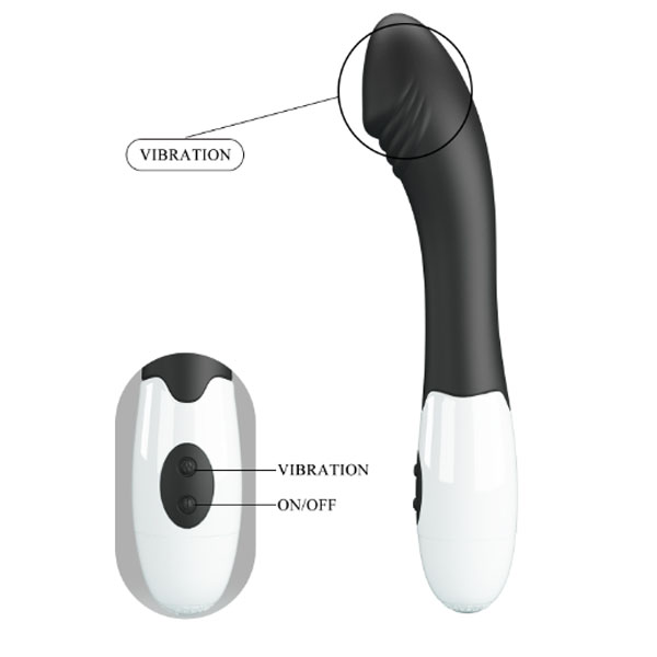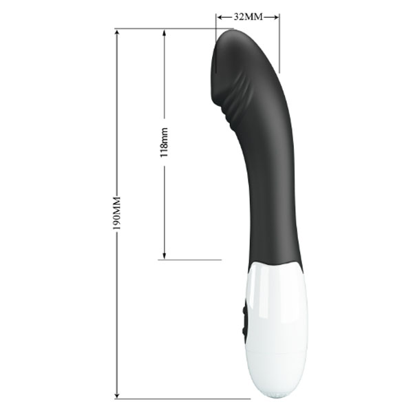 Vibrator izrađen od silikona, u crnoj boji. Izrađen od svilenkastog silikona, ovaj vibrator je baršunast prema koži, ali veće tvrdoće. Zbog svog dizajna stimuliše G tačku. Ima 30 različitih vrsta vibracije, pa ćete sigurno naći onu koja Vam odgovara.