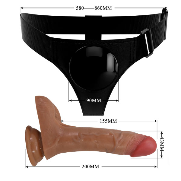 Strap on za žene u boji kože. Ovaj pojas omogućava da se na njega zakači bilo koji dildo ili vibrator koji poseduje vakuumsko postolje. Prečnik postolja treba da bude manji od 9 cm. Pojas je podesiv u obimu (od 58 cm do 86 cm struk), pa će zato odgovarati svima.