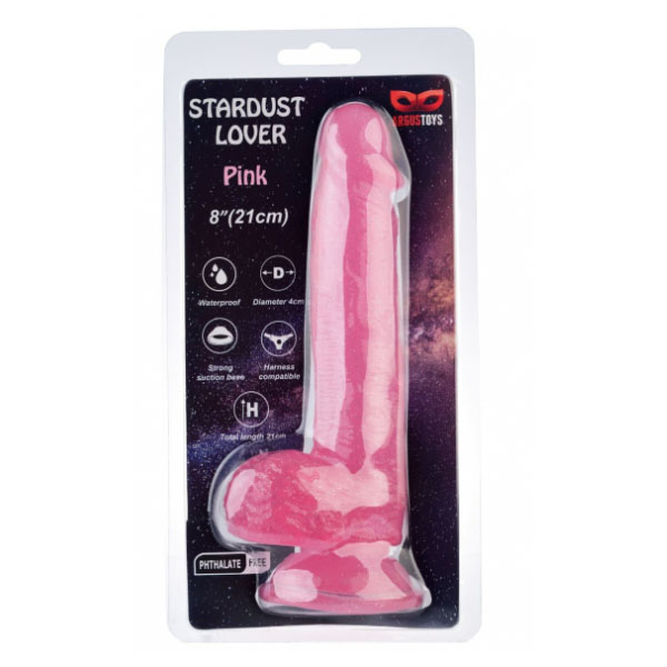 Realističan dildo izrađen od mekanog i veoma savitljivog jelly silikona, u pink boji sa šljokicama. Ima testise i vakuum postolje, pa ga možete zalepiti na bilo koji glatku površinu.