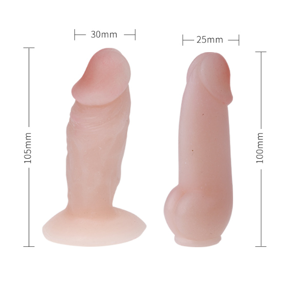 Dimenzije: Jedan je sa testisima i on je dužine 10cm, prečnika 2,5cm. Drugi ima postolje, dužine 10,5cm, prečnik 3cm.