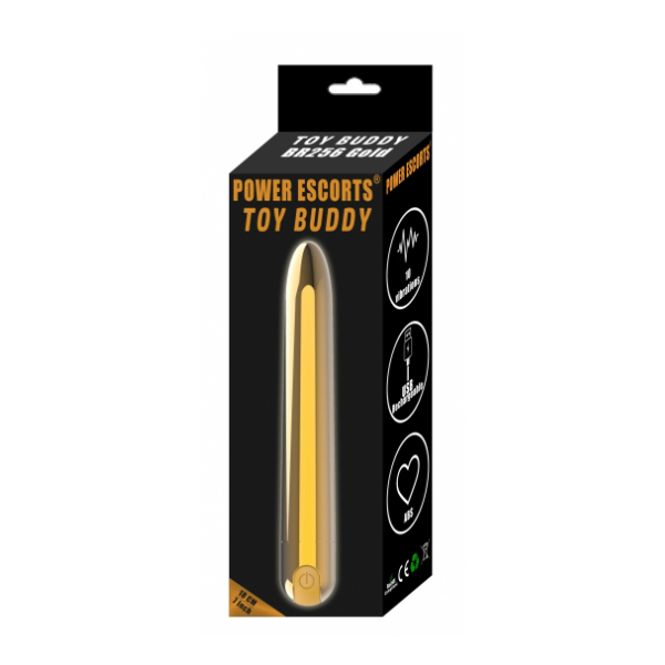 Vibrator izrađen od plastike, u zlatnoj boji. Poseduje 10 različitih modova vibracija. Ima punjive baterije koje se pune preko USB-a koji se dobija u pakovanju.