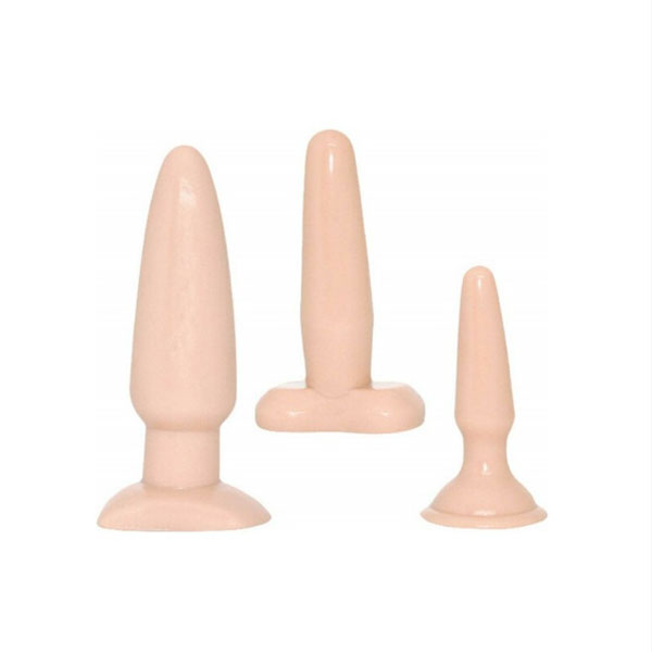 Set od 3 analne kupe različite veličine. Izrađene su od PVC materijala u boji kože. Najmanja ima vakuum postolje, tako da je možete zalepiti na bilo koju glatku povrđinu kao što su pločice, staklo… Posto su različite veličine, možete ih postepeno koristiti što je idealno za početnike. Za bolji osećaj možete koristiti neki lubrikant na bazi vode.