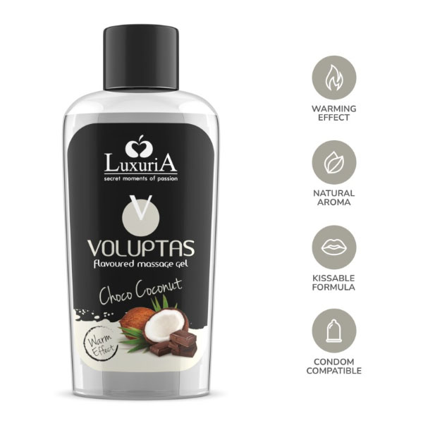 Ulje za erotsku masažu sa aromom čokolade i kokosa. Ovo je rafiniran stimulativni gel sa zadivljujućom i senzualnom aromom, koji kombinuje hidratantno dejstvo sa regenerativnim i omekšavajućim svojstvima prirodnih ekstrakata izuzetnih aromatičnih esencija. Ukusan i provokativan, savršen je za one trenutke kada želite alternativne ukuse. Ovaj gel će zagolicati Vaše fantazije i dodati dašak ukusa tokom Vaših najintimnijih susreta. Ovaj gel sa efektom zagrevanja je bezbedan za upotrebu sa igračkama, a njegova formula garantuje potpunu kompatibilnost i sa kondomima.